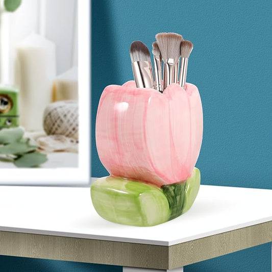 VILLCASE Tulip Pen Holder, Cute Pencil Stand Case Pencil Cups Makeup Brush Holder Desk Organizer Small Stationery Organizer for Home Office